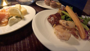 まずサラダバーとワイン、スパークリングワインがお出迎え